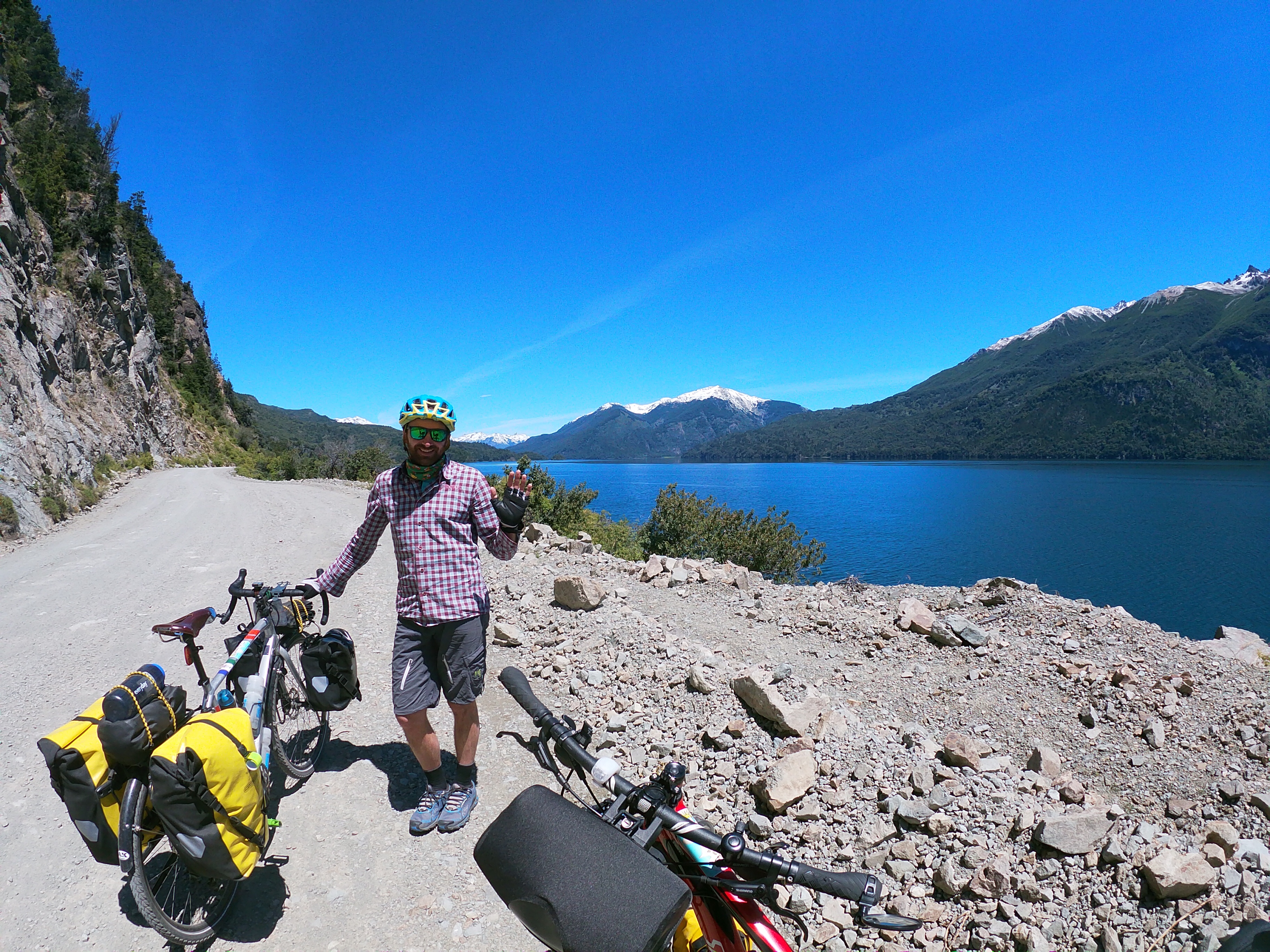 Sdraiati su un prato verde, al riparo dal vento, ammiriamo le montagne con le vette innevate. A poco a poco ci stiamo inoltrando al loro interno. Anche oggi il paesaggio è cambiato moltissimo. Da deserto patagonico con bassi cespugli e alte montagne sulle sfondo quasi impossibili da raggiungere, ad una valle verde circondata da abeti che segue il corso del fiume che arriverà su sino al confine col Cile.