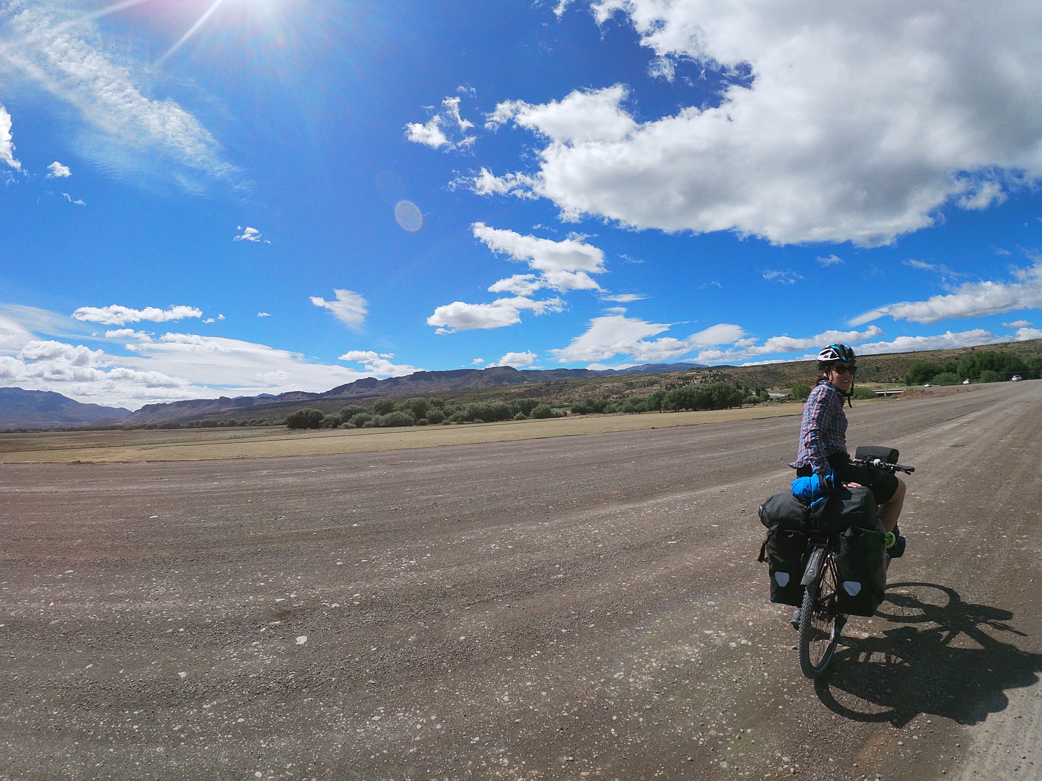 L‘erba delle aiuole è ben curata e nonostante il sole, il vento ci impedisce di scaldarci. Qua si arriva dopo 50km di ripio, lo sterrato come è chiamato da queste parti. Però c‘è sterrato e sterrato, ed oggi è stato terribile. Smosso, con le ruote che sprofondano talmente tanto da non riuscire a proseguire. Oppure puoi trovare una sorta di piccoli avvallamenti che formano come delle ondine, e tu sei in balia degli scossoni fin dentro di te.