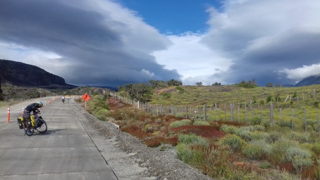 Non piove ancora ma un muro di nuvole nere si stava addensando all’orizzonte, ed il Cerro Castillo con le sue guglie nere e aguzze era già nascosto nel cielo.