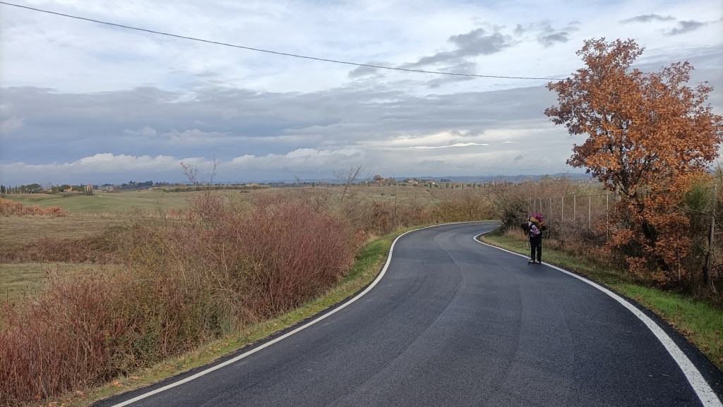 Siamo partiti con un passo falso. La sveglia non ha suonato e la partenza di primissima mattina si è tramutata in una partenza solamente di prima mattina. Questo inconveniente ci ha portato ad iniziare a camminare da Montepulciano intorno a mezzogiorno. Considerato che alle cinque del pomeriggio è già buio pesto, non è stata una grande scelta tattica.
