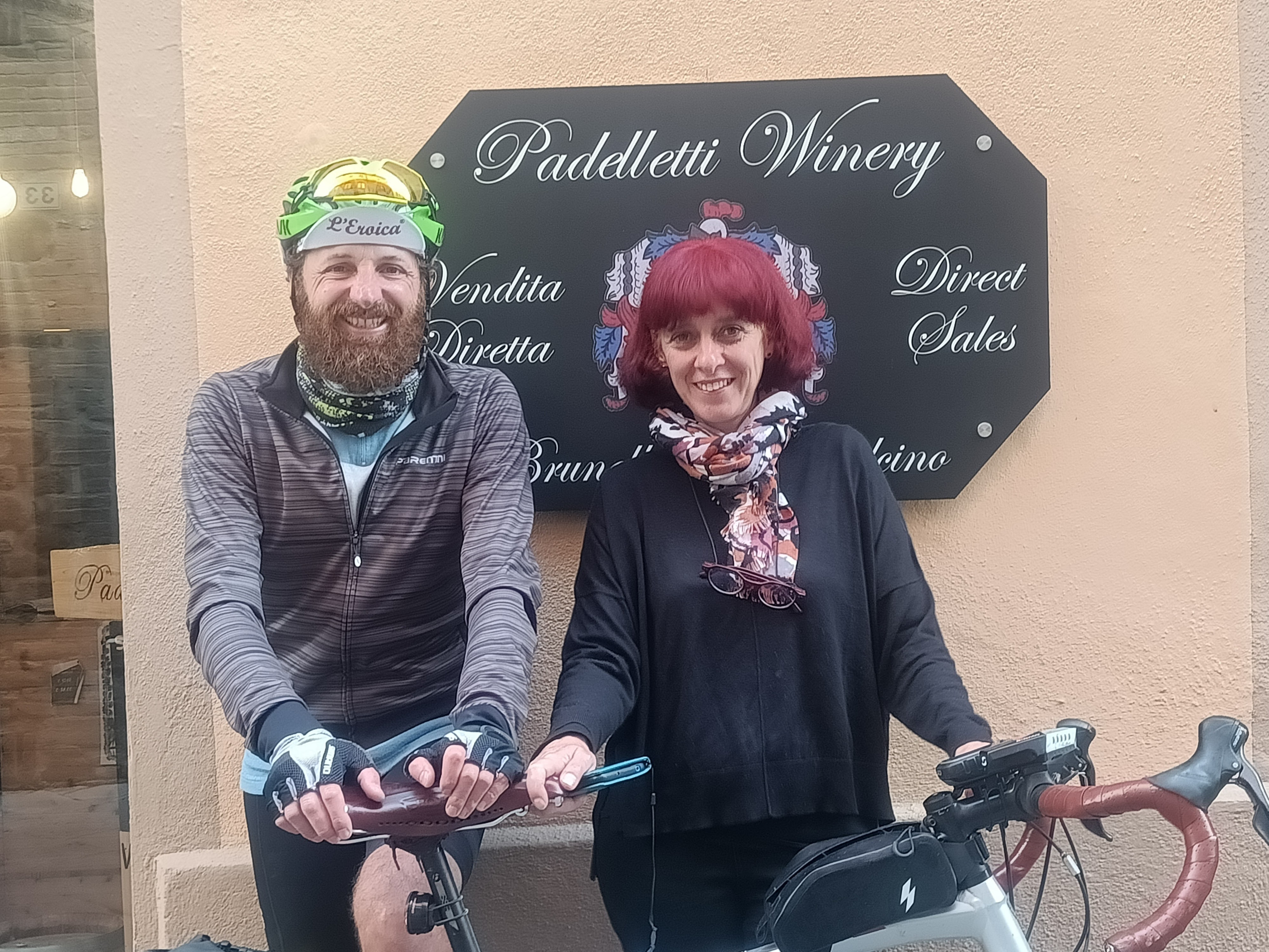 “Volete un po’ di Brunello?” chi ce lo chiede è Lucia, e la domanda non sarebbe tanto particolare se non fossimo appena saltati in sella e se non fossero solamente le dieci di mattina.