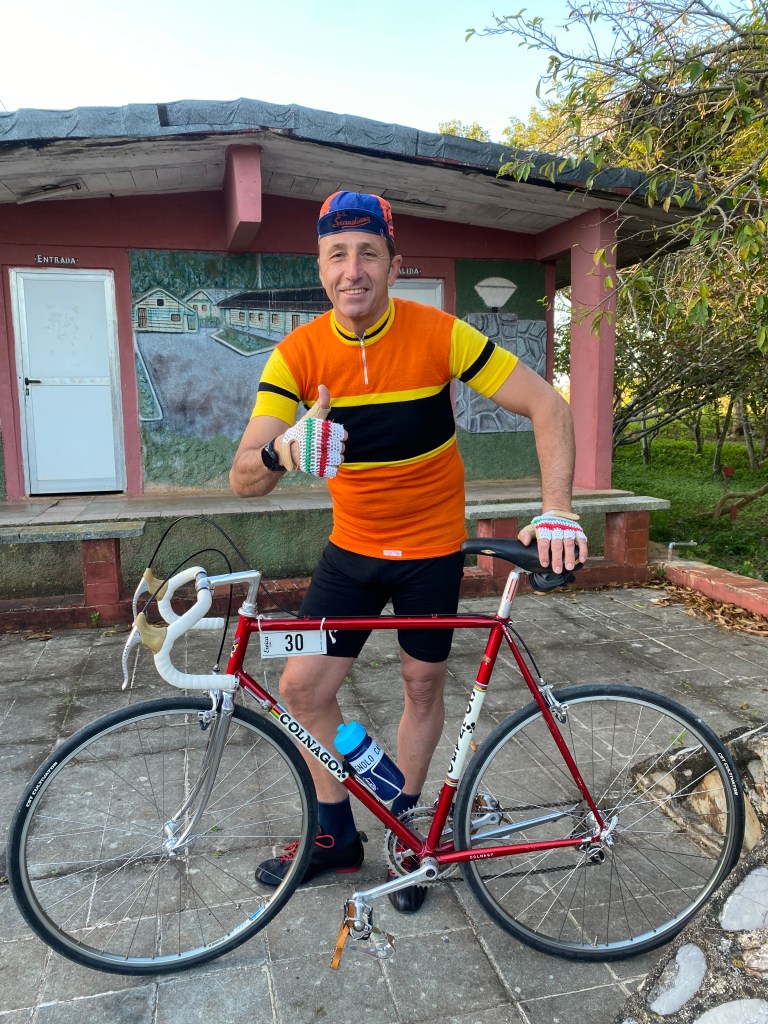 “Cuba per me è posto incantato che mi fa rivivere il mio passato, la mia infanzia di quando mio nonno, grande tifoso di Coppi, girava la Toscana in bicicletta per lavoro. Essere qui è come rivivere quei momenti in cui c’era la gioia e l’emozione del semplice stare insieme” prosegue “Cuba comunque la si guardi è un luogo unico, ad esempio qui stamani viviamo la semplicità, che è quella dell’andare in bicicletta, ci sono i sorrisi, la condivisione, lo stare insieme. Mentre se penso alle competizioni di oggi vedo solo tensione negli occhi dei corridori che se ne stanno rinchiusi nei pullman sino ad un minuto prima della partenza coi loro 3,500 aggeggi tecnologici che se gliene togli uno vanno in palla. Invece essere qui e pedalare con questo gruppo di persone è qualcosa di veramente speciale, poi personalmente ho una motivazione in più. Oggi pedalerò con questa Colnago Mexico del 1985, che è stata la prima bici che mi hanno dato alla Magniflex quando ho iniziato la mia carriera. Successivamente la regalai a mio fratello Guido, che purtroppo due anni fa a causa del Covid è morto. Quindi oggi pedalare con questa bici in questa Eroica è un po’ come pedalare assieme a lui e celebrarlo in un posto bellissimo circondato da persone fantastiche”