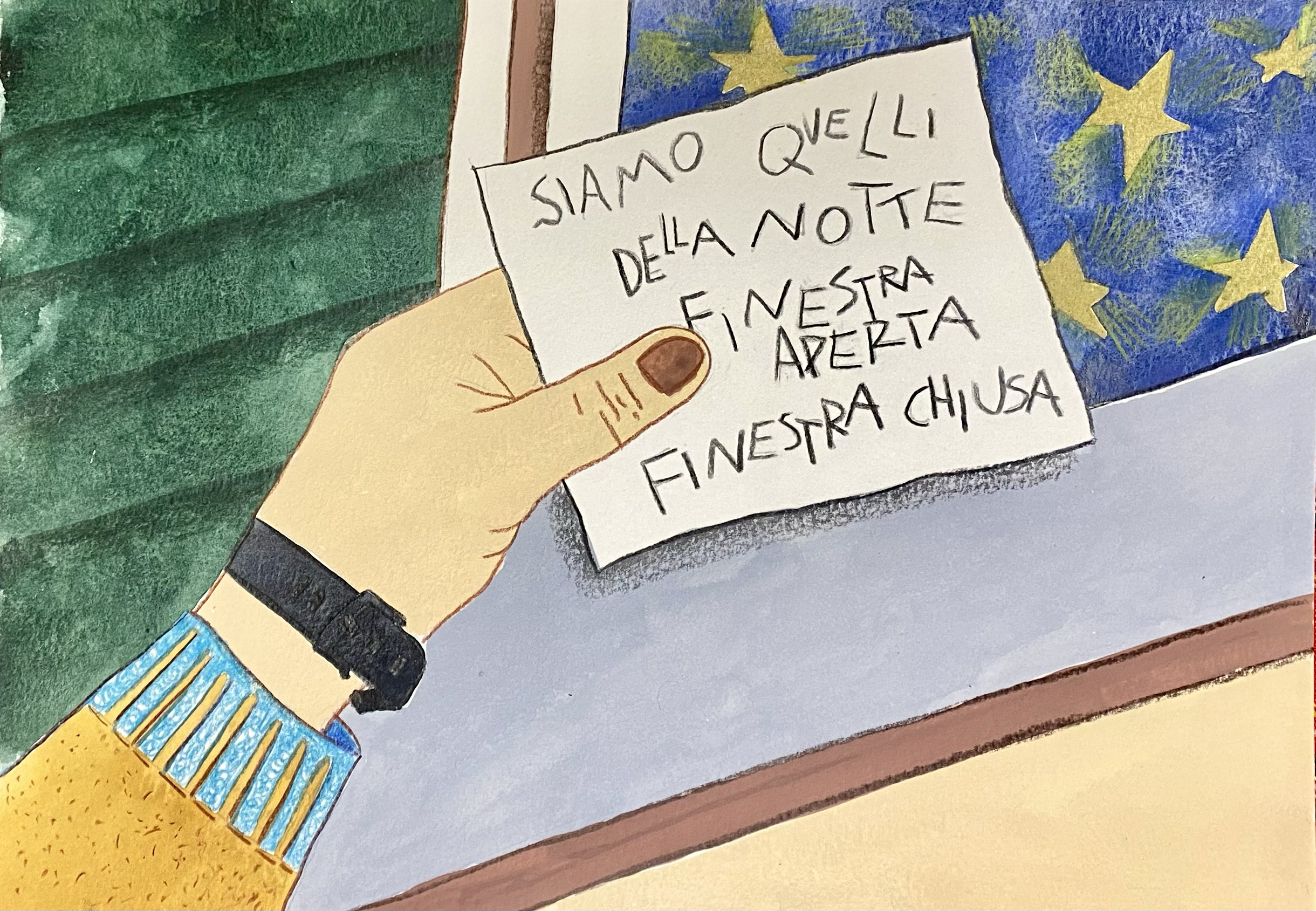 Il mistero rimase tale per quel mese. Il mese successivo però trovai un indizio. Un foglietto incastrato nella finestra mentre una mattina, ricoperto di sudore, mi accingevo a riaprirla. Sopra vi erano scritte alcune parole con una calligrafia pessima in cui a malapena si riusciva a leggere: siamo quelli della notte. Finestra aperta – Finestra chiusa.